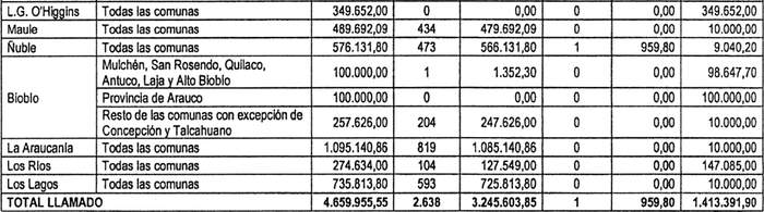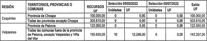 3. Los recursos comprometidos en el Resuelvo 1. de la presente resolución, para el proyecto seleccionado en el cierre de postulación efectuado el día 5 de julio de 2022, del concurso a que se llamó por resolución exenta N° 399 (V. y U.), de 2022, se resumen en el siguiente cuadro para cada región del país, incluyendo la suma total de familias beneficiadas y las Unidades de Fomento comprometidas, considerando los montos de subsidio de los proyectos, incluidos sus respectivos servicios de asistencia técnica y fiscalización técnica de obras: