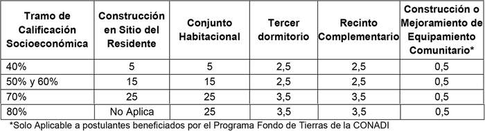 Los proyectos se financiarán considerando el ahorro mínimo establecido en el artículo 11 del DS Nº 10 (V. y U.), de 2015, y el saldo de ahorro en Unidades de Fomento no enterado por el postulante, en virtud de la rebaja establecida en el cuadro anterior, será aportado por el Ministerio de Vivienda y Urbanismo, al momento de la selección.