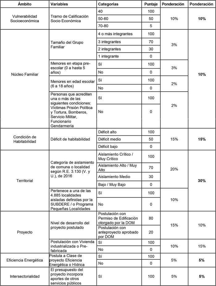 34. La selección de los postulantes para la asignación del subsidio se realizará conforme al orden de prelación, de acuerdo con los antecedentes acreditados que permiten el otorgamiento de puntaje, ordenados de mayor a menor, hasta enterar el total de recursos disponibles para este llamado. Los factores para determinar el puntaje que definirá la prelación entre los postulantes serán los siguientes: