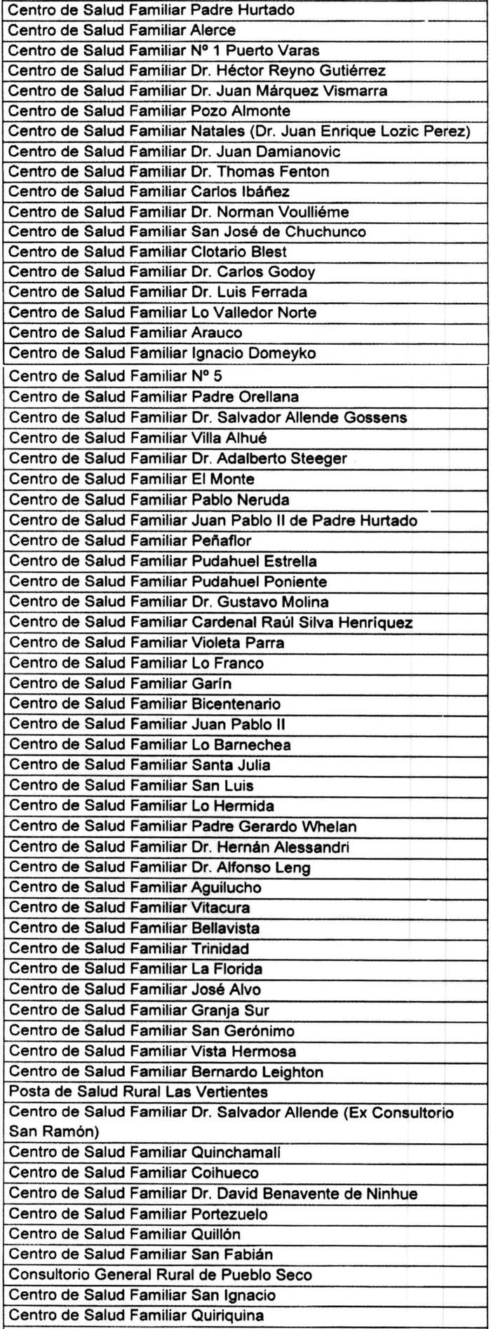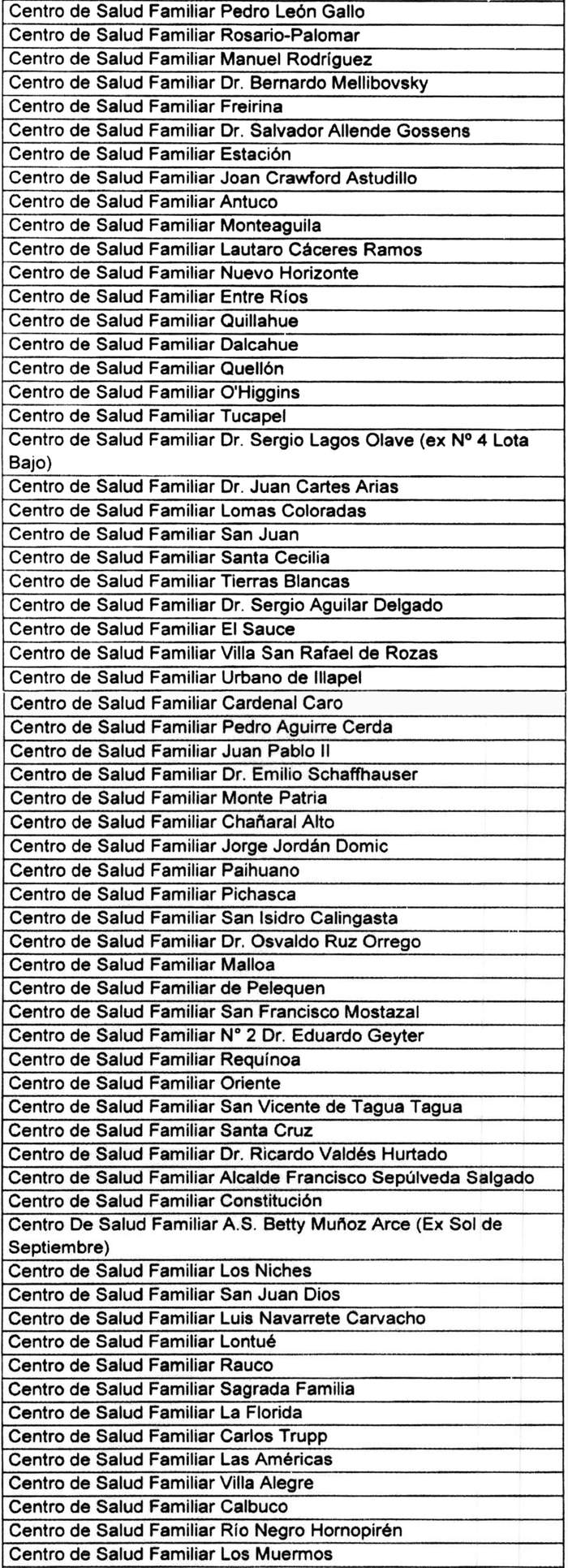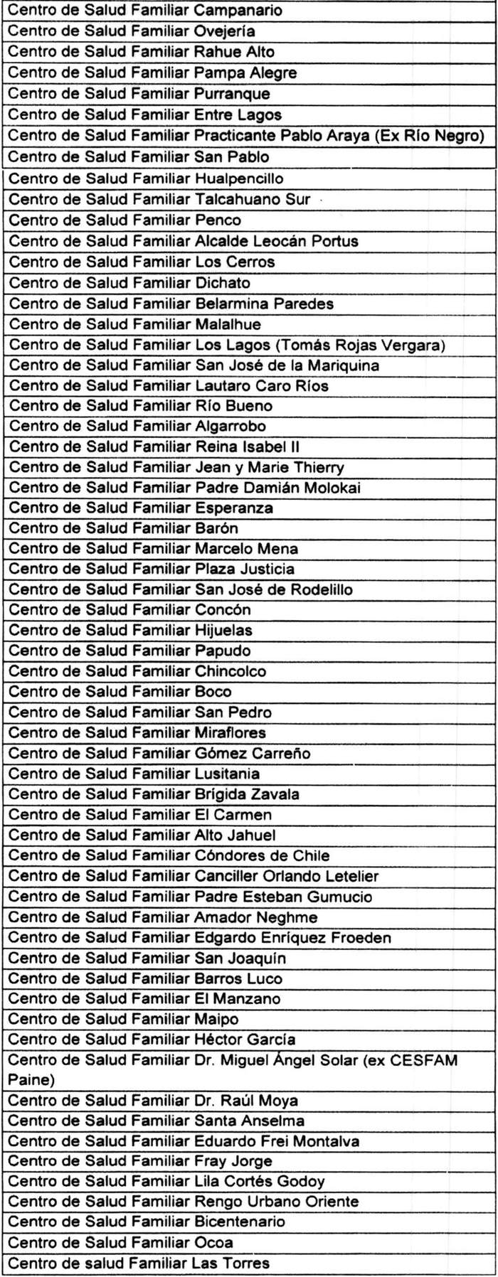 1º.- Dispóngase la siguiente nómina de los Centros de Salud Familiar que deberán cumplir la garantía de calidad de conformidad a lo dispuesto en el decreto supremo Nº 72, de 2022, del Ministerio de Salud.