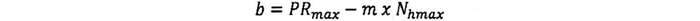 La pendiente m de una institución dada se calcula utilizando el Puntaje Ranking máximo (PRmax) que es 1.000 para todas las instituciones, el Puntaje NEM de un estudiante cuyo Promedio Acumulado es igual al Promedio Histórico (PN hist), el Promedio Máximo Histórico (Nhmax) y el Promedio Histórico (N hist). La ecuación 2 representa la fórmula de cálculo: