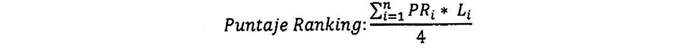 El Puntaje Ranking tendrá la siguiente fórmula de cálculo: