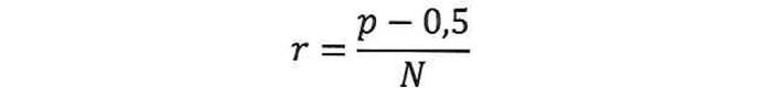 2) Cálculo de Puntaje Base. Para el cálculo del Puntaje Base, r, primero se ordenarán de menor a mayor las notas de promoción de todas las personas de la población de referencia. Luego, se ubicará el lugar correspondiente a la nota de promoción de la persona, en esa lista ordenada. El número correspondiente a ese lugar en la lista se denotará por p. Si esa nota coincidiera con una o más de las notas de la lista, es decir, un empate, el número p corresponderá a la mejor de estas posiciones.
