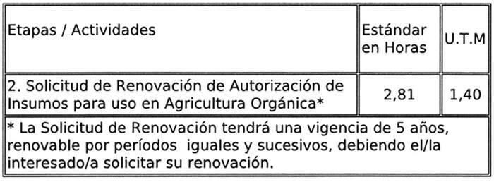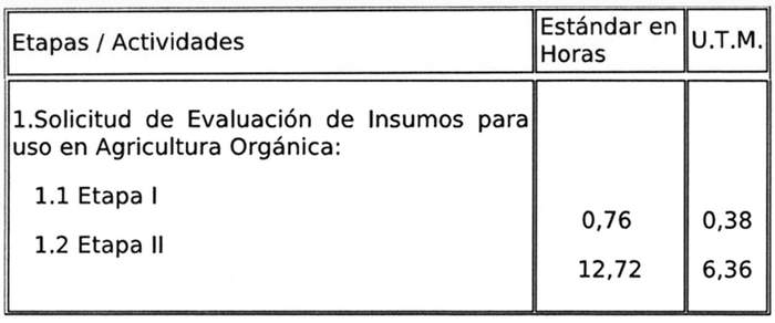 5. Que, es necesario establecer tiempos estándares para la evaluación de insumos para uso en agricultura orgánica, considerándose, además, que se trata de prestaciones homogéneas.
