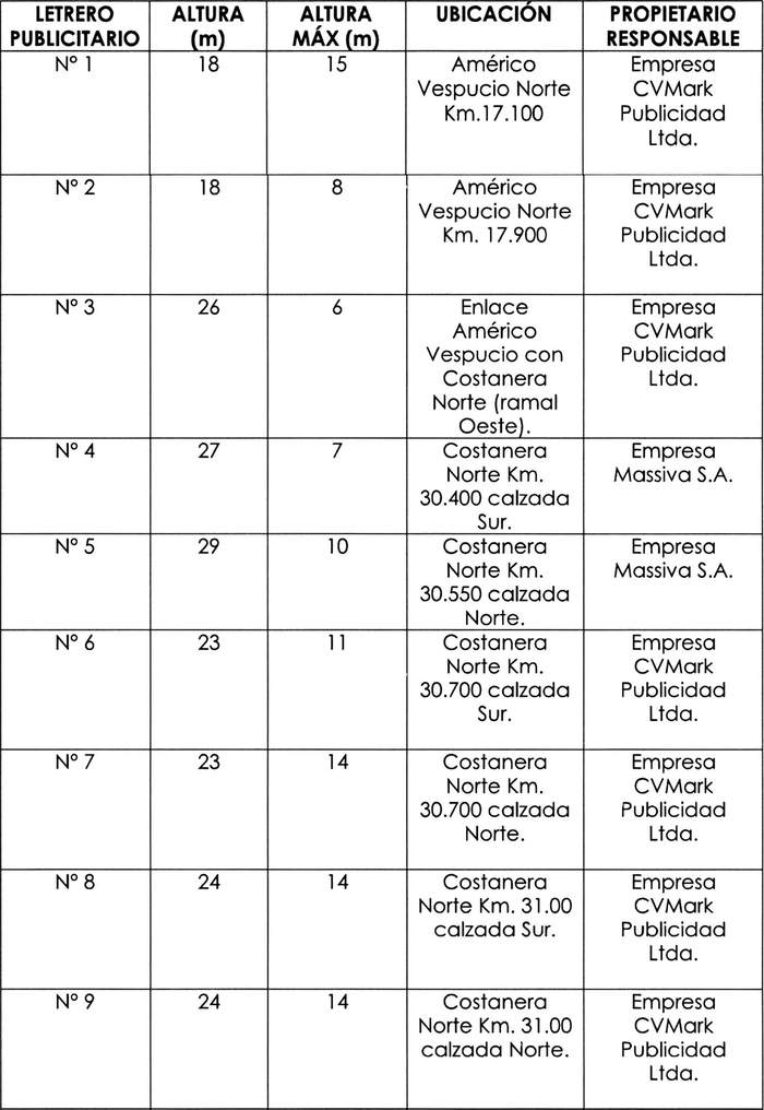 (*) Letrero publicitario debe ser removido por encontrarse dentro del radio de 200 m del DVOR35R, de conformidad a lo establecido en el numeral 4 del decreto N° 173 del Ministerio de Defensa Nacional, de 2004.