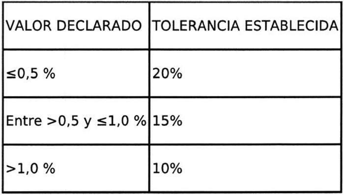 Sobrepasada esta tolerancia, el interesado podrá hacer uso de las contramuestras o en su defecto reetiquetar a los valores determinados por el resultado de análisis de composición.