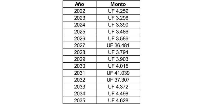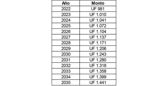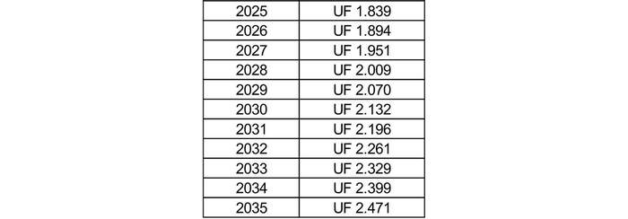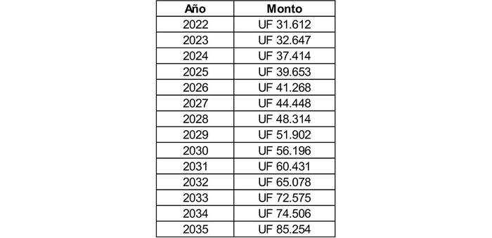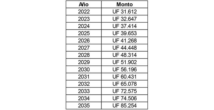 c) UF 4.252,85 (Cuatro mil doscientas cincuenta y dos coma ochenta y cinco Unidades de Fomento), neta de IVA, serán reconocidas con signo negativo, con fecha del último día del mes en que el Inspector Fiscal apruebe la Fase 3, de conformidad a lo establecido en el numeral 2.2.2 de la resolución DGC (exenta) N° 36, de fecha 11 de julio de 2022, la cual será sancionada en el decreto supremo que apruebe el presente Convenio.