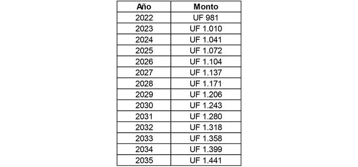 Estos montos se expresarán en Unidades de Fomento con dos decimales, sin Impuesto al Valor Agregado (IVA), redondeados al segundo decimal, usando para efectos de su conversión el valor de dicha unidad fijado para la fecha de reconocimiento de cada monto.