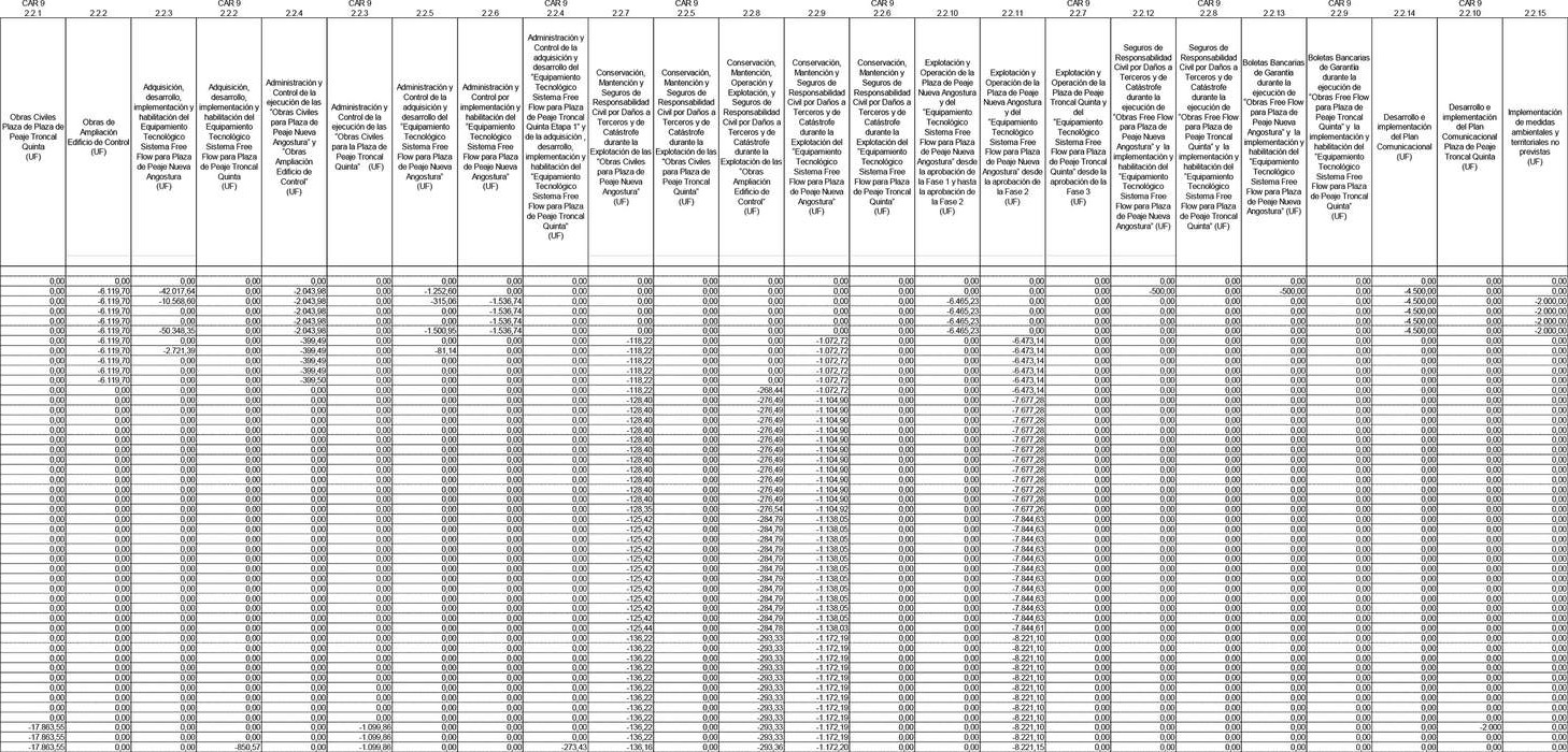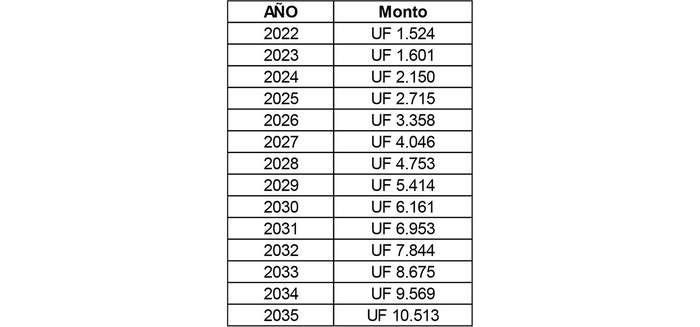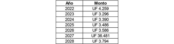 Se deja constancia que para el mes de aprobación de la adquisición, desarrollo e implementación del "Equipamiento Tecnológico Acceso Universal para Plaza de Peaje Troncal Quinta", correspondiente a abril de 2022, el monto a contabilizar será de UF 2.107,45, que corresponde al proporcional del mes en el cual el Acceso Universal inició su operación. Por otra parte, para el mes de aprobación de la Fase 3, el monto a contabilizar será el proporcional del mes entre el primer día del mes de aprobación de la Fase 3 y el día de aprobación de la mencionada fase por el Inspector Fiscal.