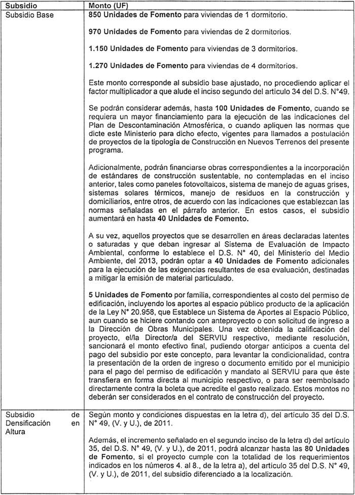1. Establécese que, para los proyectos beneficiados mediante las resoluciones citadas en los Vistos c), e), f), h) e i), el financiamiento total estará conformado por la suma del subsidio base según corresponda, y los subsidios complementarios descritos en la tabla inserta a continuación: