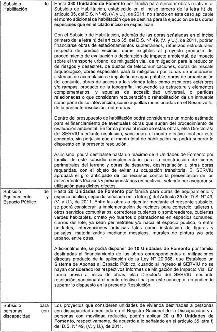 4. Establécese que los proyectos beneficiados mediante las resoluciones citadas en los Vistos c), e), f), h) e i) de la presente resolución, podrán considerar de manera total o parcial obras de recuperación, mejoramiento, y/o ampliación de la vivienda o inmueble existente, de acuerdo a lo establecido en la letra d), del artículo 9 del DS Nº 49 (V. y U.), de 2011, modificando el programa arquitectónico inicial de la vivienda existente, con el objeto de transformarla para acoger a más de un núcleo familiar, generando así unidades habitacionales adicionales.