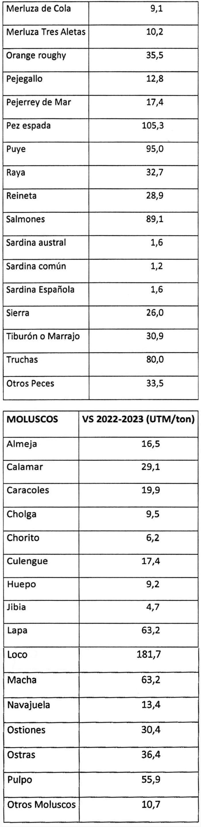 FIJA VALOR DE SANCIÓN DE ESPECIES HIDROBIOLÓGICAS QUE INDICA PERIODO 2022-2023