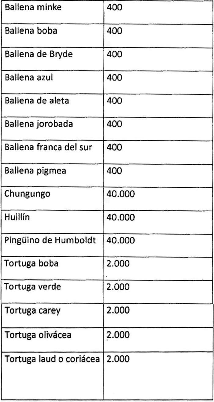 (*) CITES: Convención sobre el comercio internacional de especies amenazadas de flora y fauna silvestre, especies susceptibles de ser capturadas en Chile.