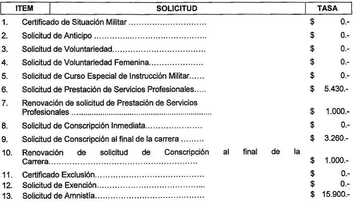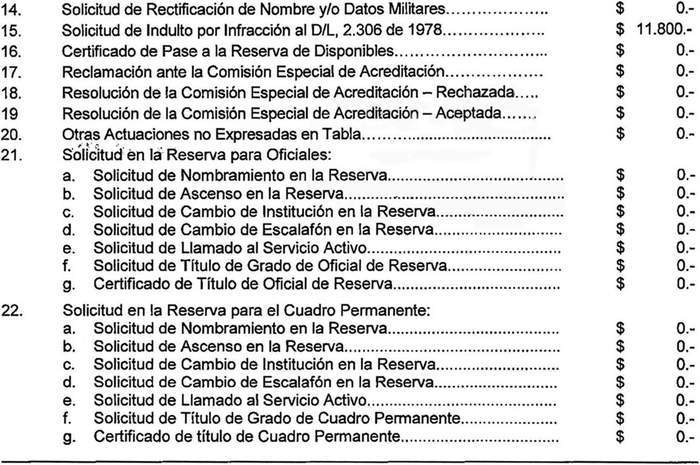 FIJA TASAS DE DERECHOS A SOLICITUDES Y ACTUACIONES DEL DL Nº 2.306, DE 1978, QUE DICTA NORMAS SOBRE RECLUTAMIENTO Y MOVILIZACIÓN DE LAS FUERZAS ARMADAS