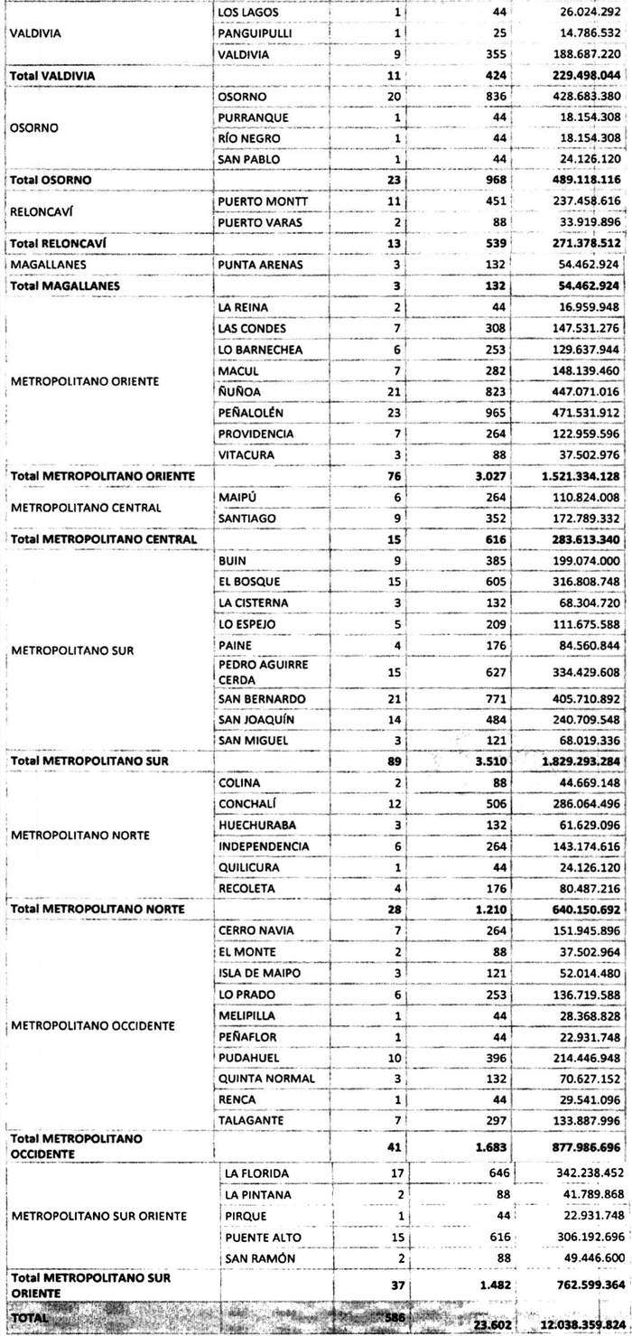 5. Que, lo indicado en el considerando anterior, significa aumentar recursos a las comunas de Tomé y Santiago.