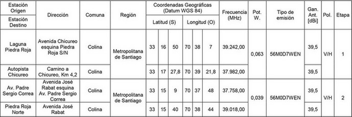 Los radioenlaces se implementarán a través de medios propios o de terceros debidamente autorizados.