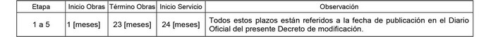 2. Los plazos son los que se indican a continuación: