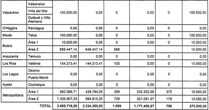 4. Los recursos comprometidos para los proyectos seleccionados en el concurso a que se llamó por resolución exenta N°504 (V. y U.), de 2022, cuyos cierres de postulación se efectuaron los días 2 de junio y 2 de agosto de 2022, se resumen en el siguiente cuadro para cada región del país, según corresponda, incluyendo la suma total de familias beneficiadas y Unidades de Fomento comprometidas, considerando los montos de subsidio de los proyectos, incluidos sus respectivos Servicios de Asistencia Técnica, Fiscalización Técnica de Obras y aranceles del Conservador de Bienes Raíces: