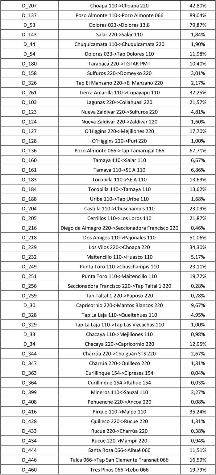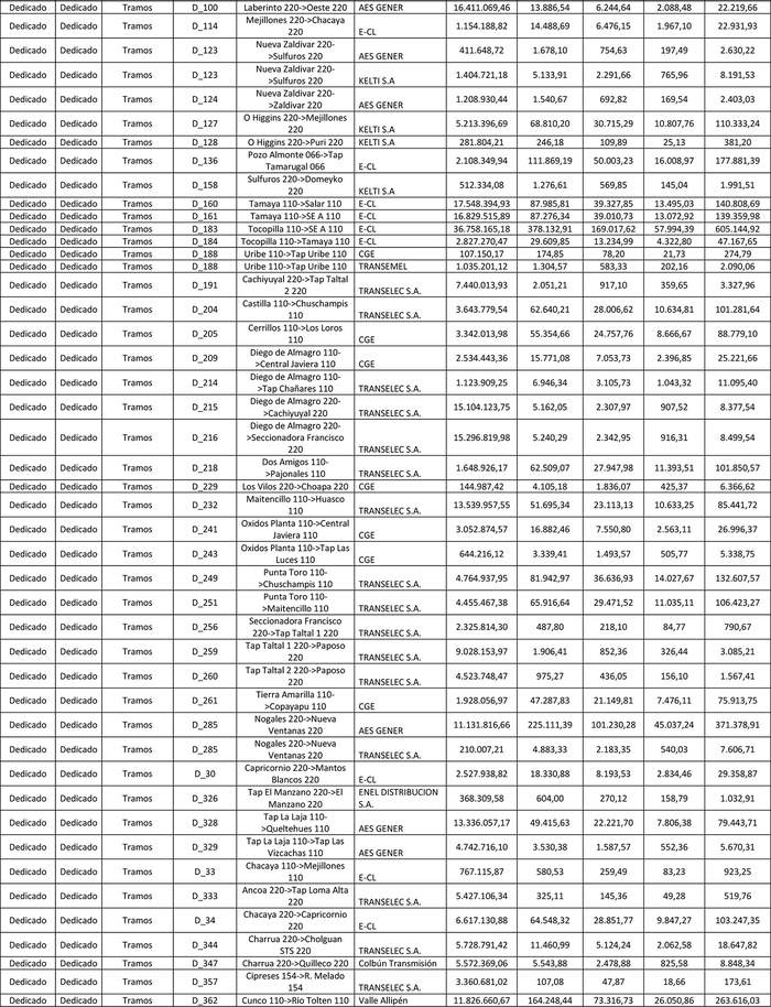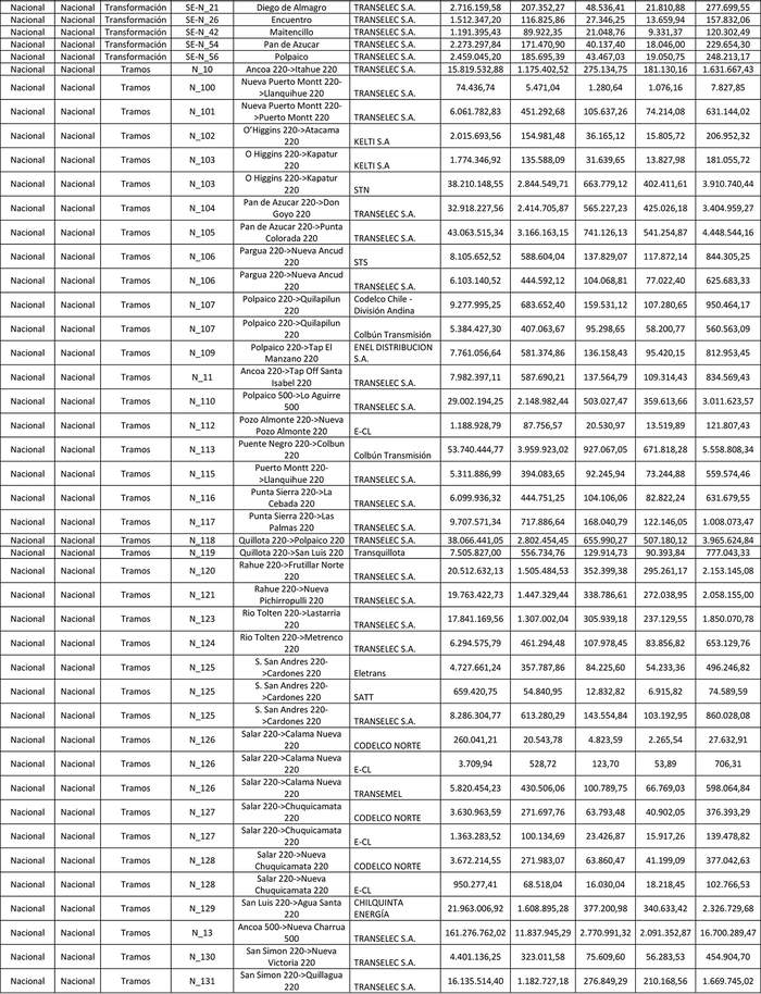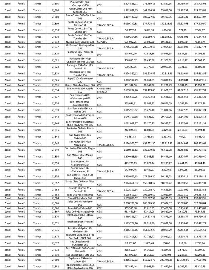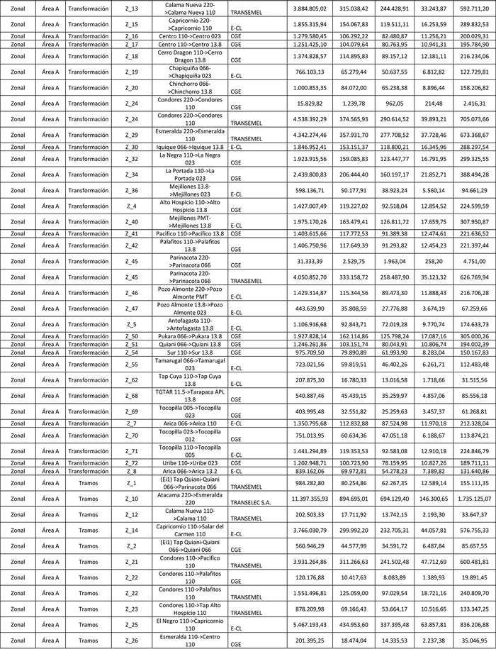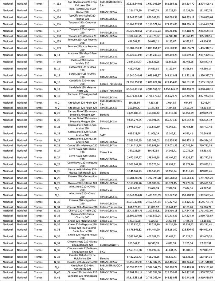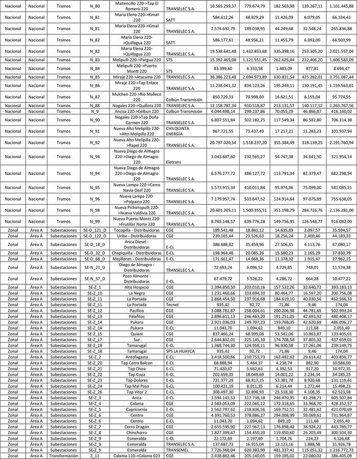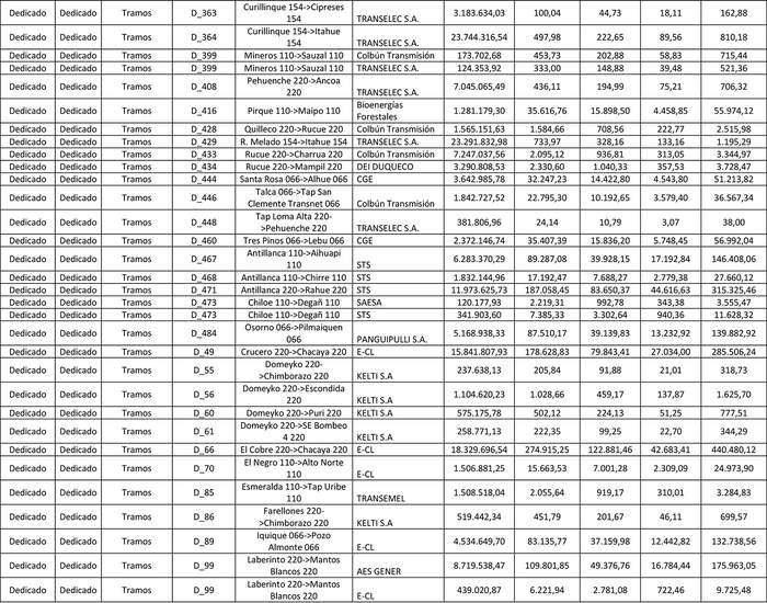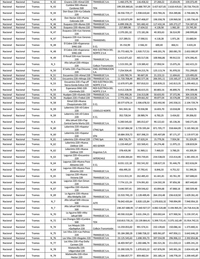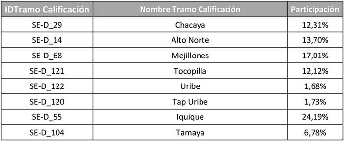 Nota: la calificación de los tramos se efectuó considerando la Resolución Exenta N° 244, de 9 de abril de 2019, de la Comisión Nacional de Energía, que Aprueba Informe Técnico Definitivo de Calificación de Instalaciones de los Sistemas de Transmisión para el Periodo 2020-2023.