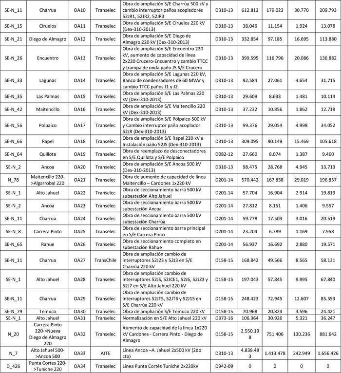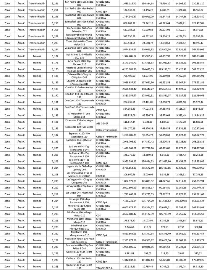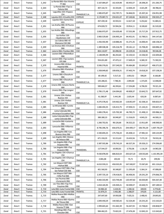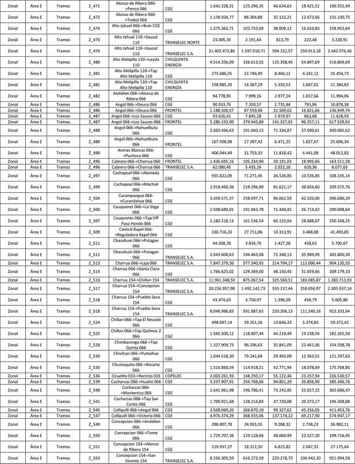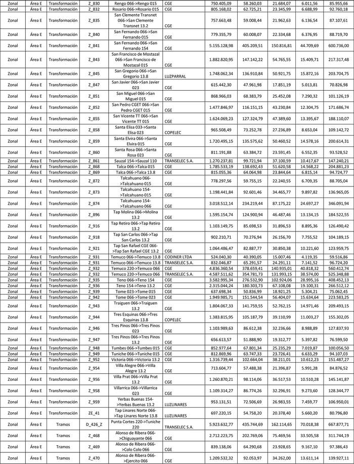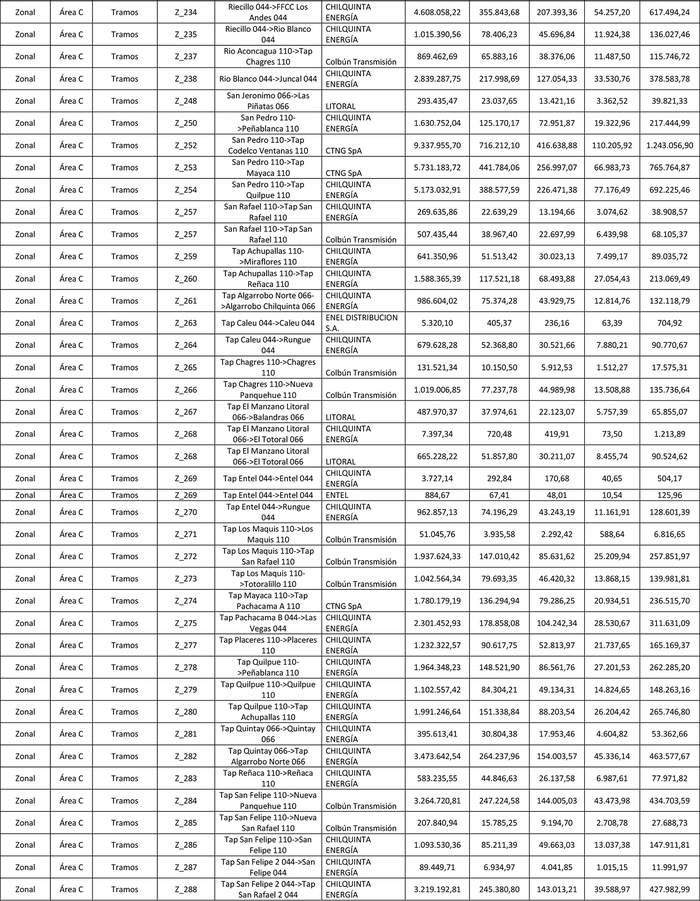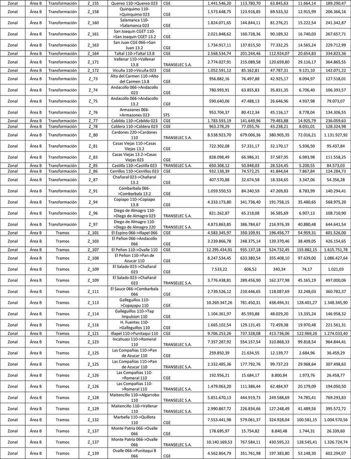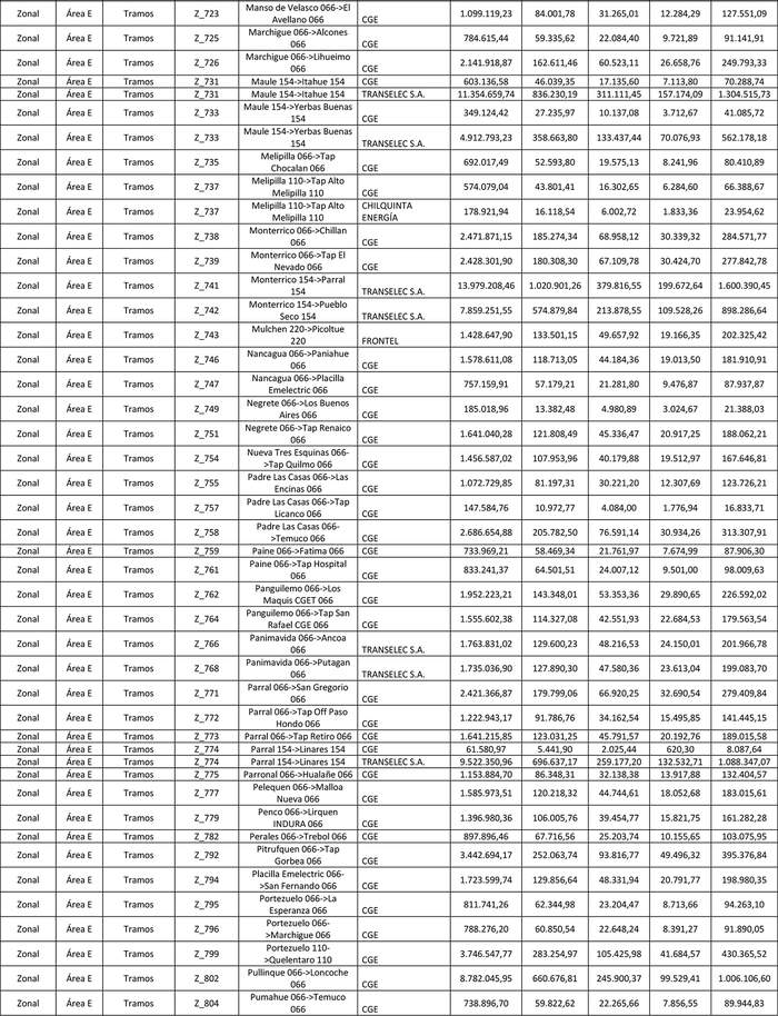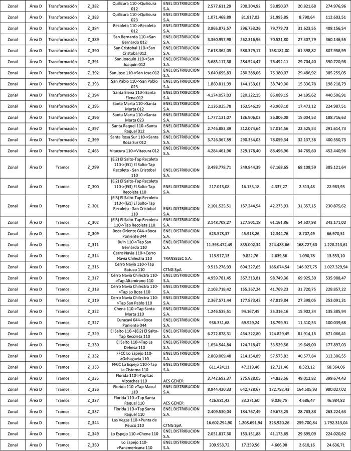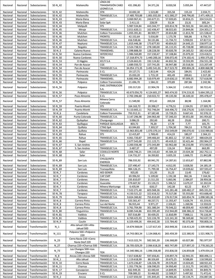 Nota: la calificación de los tramos se efectuó considerando la Resolución Exenta N° 244, de 9 de abril de 2019, de la Comisión Nacional de Energía, que Aprueba Informe Técnico Definitivo de Calificación de Instalaciones de los Sistemas de Transmisión para el Periodo 2020-2023.