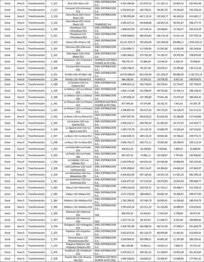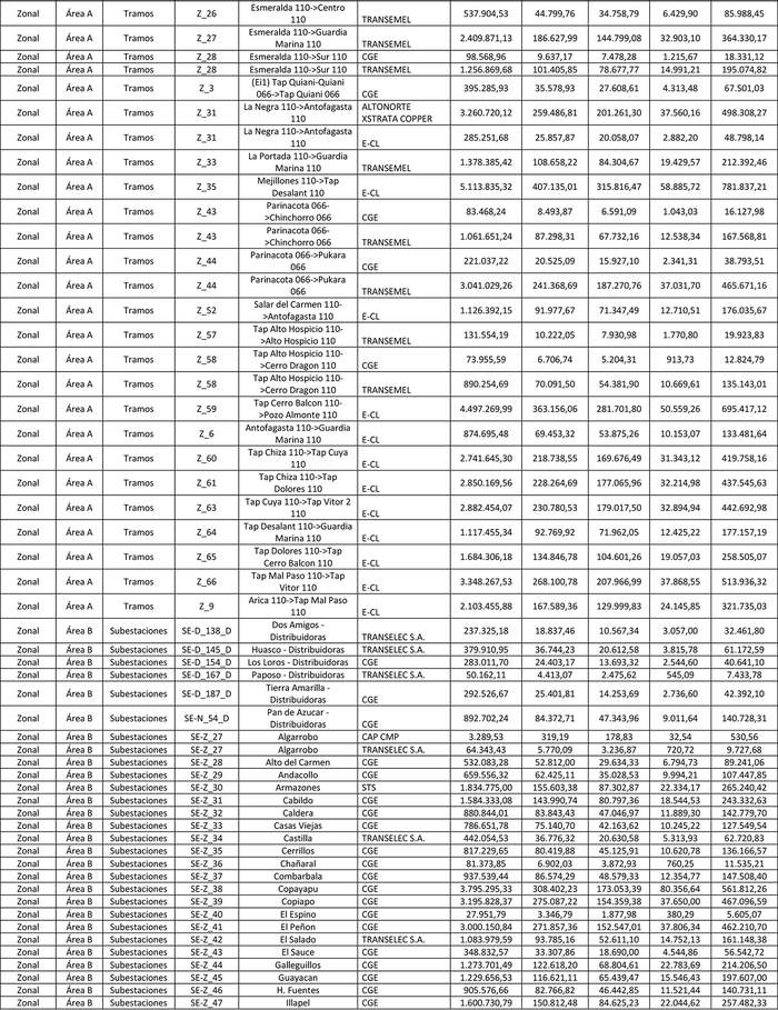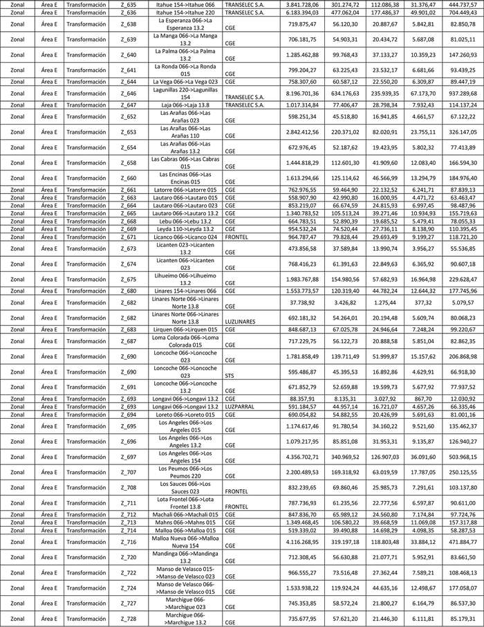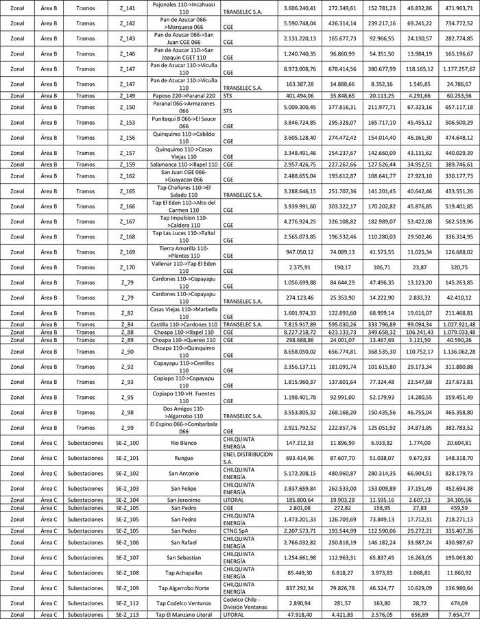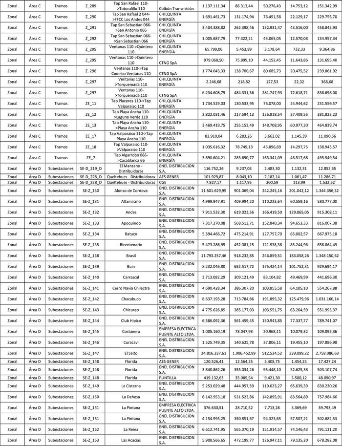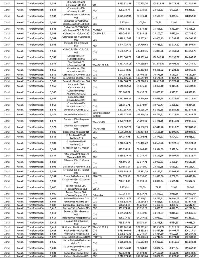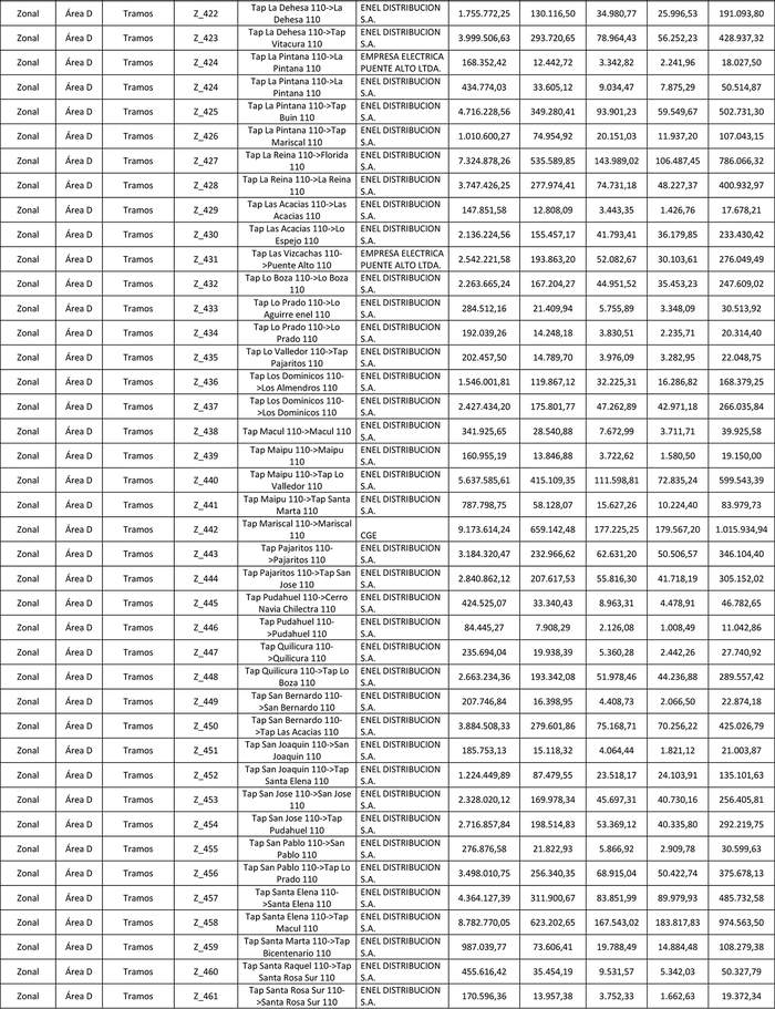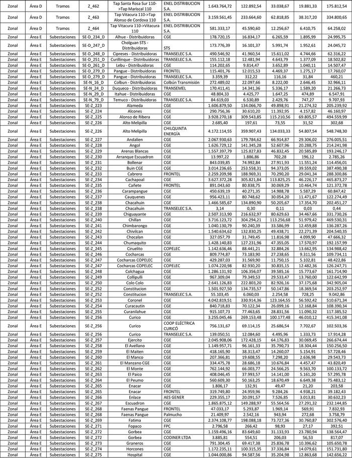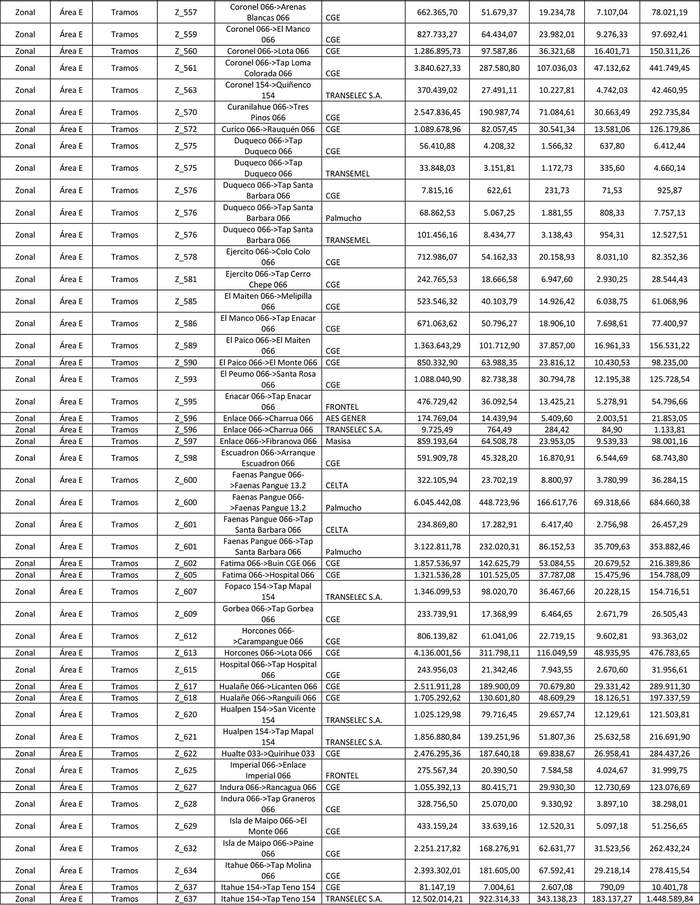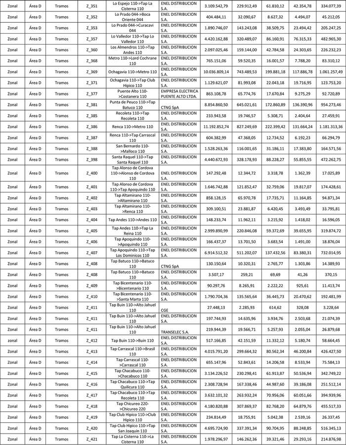 Nota: la calificación de los tramos se efectuó considerando la Resolución Exenta N° 244, de 9 de abril de 2019, de la Comisión Nacional de Energía, que Aprueba Informe Técnico Definitivo de Calificación de Instalaciones de los Sistemas de Transmisión para el Periodo 2020-2023.
