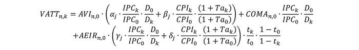 VATTn,k :Valor del A.V.I. + C.O.M.A. + A.E.I.R. del tramo n en el mes k, en dólares.