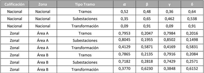 :Coeficientes de indexación para el tipo de tramo j del Sistema de Transmisión y tipo de tramo que corresponda. Los coeficientes de indexación