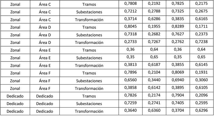 Tabla 2: Porcentaje de uso de instalaciones dedicadas por parte de usuarios sometidos a regulación de precios