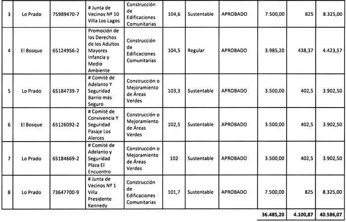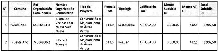 (2) Resolución electrónica exenta Nº 570, de fecha 22 de julio de 2022. Seremi Minvu RM aprueba nómina de postulantes seleccionados en la Región Metropolitana para el otorgamiento de subsidios habitacionales correspondientes a la primera selección del llamado en condiciones especiales para proyectos del Capítulo Primero, Equipamiento Comunitario, del Programa de Mejoramiento de Viviendas y Barrios, regulado por el DS Nº 27 (V. y U.) de 2016, dirigido a Organizaciones Comunitarias y Juntas de Vecinos, regidas por la ley Nº 19.418, la cual se encuentra con calificación aprobada por Serviu Metropolitano, la cual se adjunta y se entiende parte integrante de la citada resolución:
