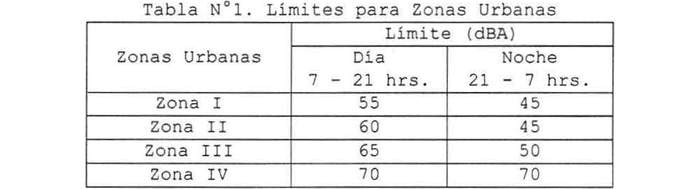 Límites de emisión de ruido en zona urbana. Para zona urbana, los límites de emisión para la fuente fija para periodo diurno y nocturno serán los siguientes, dependiendo de la zona específica en la cual se encuentre el receptor.
