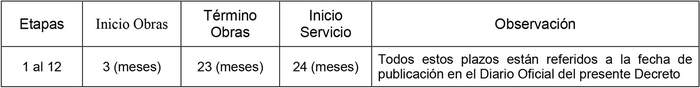 2. Los plazos serán los que se indican a continuación: