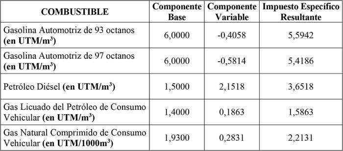 DETERMINA EL COMPONENTE VARIABLE PARA EL CÁLCULO DEL IMPUESTO ESPECÍFICO ESTABLECIDO EN LA LEY N° 18.502
