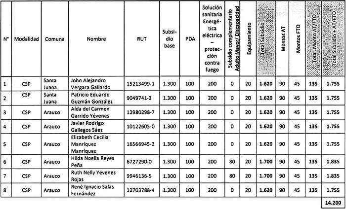 La nómina de beneficiarios, incluidas en la presente resolución podrá difundirse en un periódico de circulación regional o nacional, o en el sitio web del Minvu o de Serviu región del Biobío, durante los 15 días posteriores a la publicación de la presente resolución.-