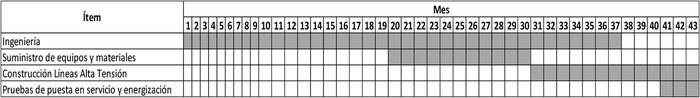 Artículo 11º.- El plazo de construcción de las obras, desde el inicio de los trabajos hasta la terminación total de las obras, será de 43 meses, considerando el inicio de ellas a los 3 meses siguientes contados desde la reducción a escritura pública del presente decreto de concesión eléctrica definitiva.