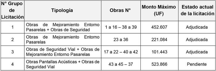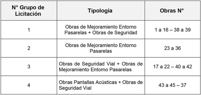 Sin perjuicio de lo anterior, las obras de seguridad vial N°s 43 a 45 no serán ejecutadas de conformidad a lo dispuesto en el N°2 del presente decreto supremo, de forma tal que el Grupo de Licitación N° 4 quedará conformado sólo con las Obras Pantallas Acústicas.