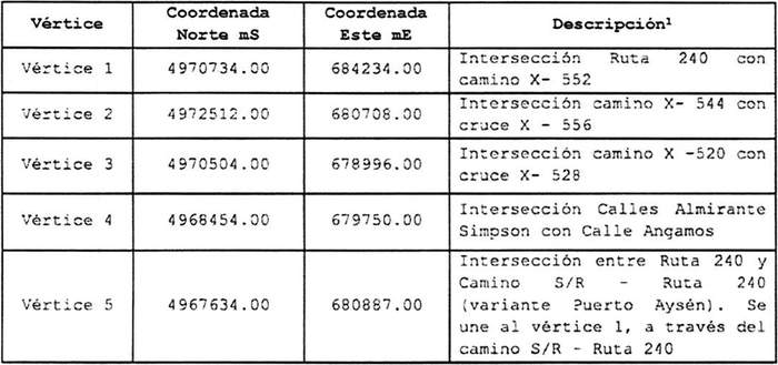 a) Para establecer el polígono a declarar como zona saturada por MP2,5, se identificaron como hitos geográficos las intersecciones de caminos y se trazó en Google Earth una superficie mayor a la zona urbana de Puerto Aysén (visible en esta plataforma) y menor que la superficie comunal. Lo anterior considerando que la comuna de Aysén tiene una gran extensión territorial con una superficie de 29.906 km2 y que la ciudad de Puerto Aysén concentra el 72,8% de la población comunal, contando con una superficie cercana a 7,22 km2.