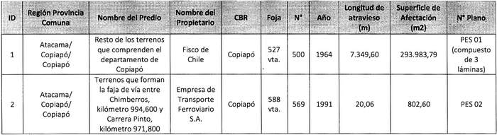 Artículo 7º.- Constitúyase, de acuerdo con lo que sobre el particular establece la Ley General de Servicios Eléctricos, las servidumbres para el establecimiento del proyecto "Línea 1x220 kV Campos del Sol Sur - Carrera Pinto", en los predios que se indican a continuación:
