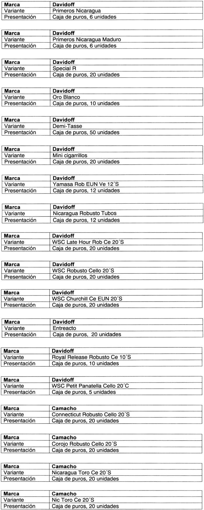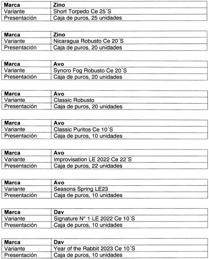 1º. Que, se ha solicitado a este Ministerio la autorización para la comercialización de la marca de productos de tabaco comercializados por la Empresa E & A Habanos y Puros SpA., RUT Nº 77.206.297-4, que se indican a continuación: