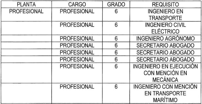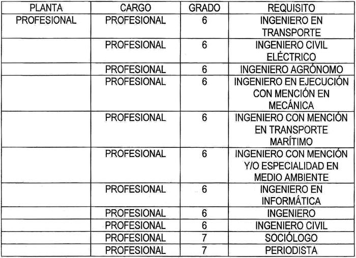 Artículo 1º: Suprímanse de los siguientes cargos de la Planta Municipal los requisitos específicos que a continuación se señalan: