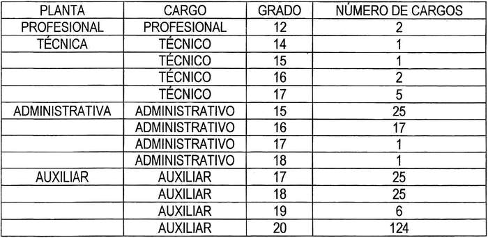 Artículo 3º: Créanse los siguientes cargos en las Plantas Directivos, Profesional, Jefatura, Técnicos y Auxiliares que a continuación se indican: