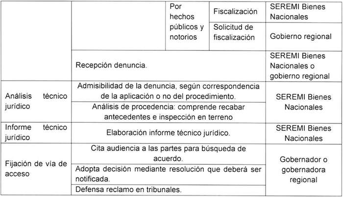 c) Las etapas o actividades que la administración ejecuta para la fijación de vías de acceso a playas de mar, ríos o lagos en terrenos colindantes se realizarán por el gobierno regional o la respectiva Seremi de acuerdo al siguiente detalle: