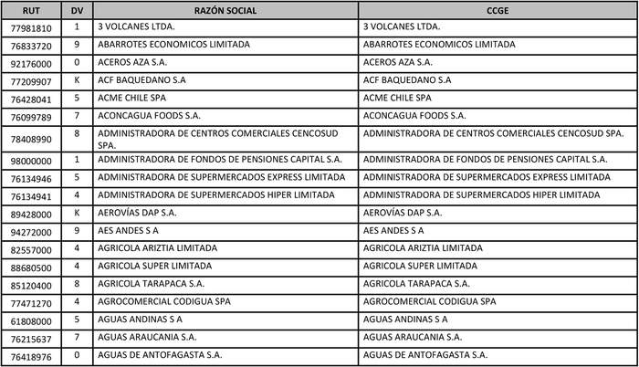 1. Fíjase el listado de consumidores catalogados como Consumidores con Capacidad de Gestión de Energía o CCGE, quienes deberán implementar y mantener un Sistema de Gestión de Energía, conforme a los requisitos establecidos en el Decreto Supremo N° 28, de 2021, del Ministerio de Energía, que aprueba reglamento sobre gestión energética de los consumidores con capacidad de gestión de energía y de los organismos públicos, a que se refieren los artículos 2° y 5° de la Ley N° 21.305: