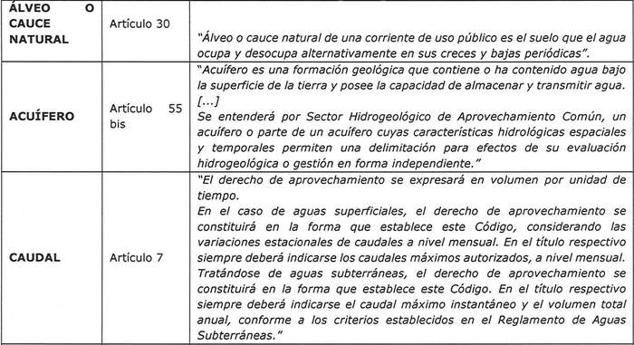 Cuadro 2 Definiciones Código de Aguas