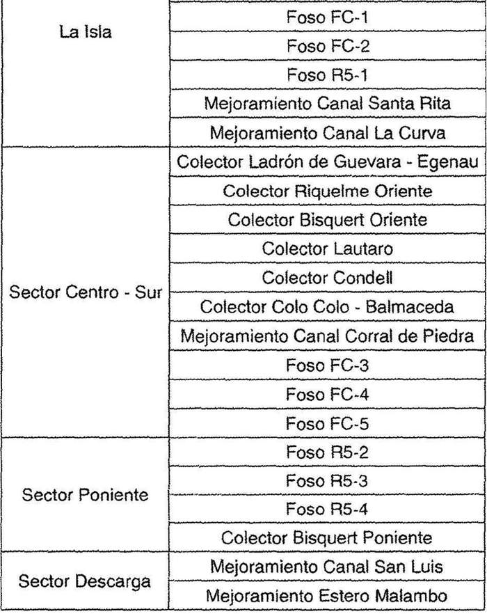 Artículo 2°.- Defínase como red primaria del sistema de evacuación y drenaje de aguas lluvias de la ciudad de Rengo lo que a continuación se señala: los cauces naturales y artificiales receptores de aguas lluvias y sus mejoramientos (Estero Malambo, Canal Santa Rita, Canal La Curva, Canal Corral de Piedra, Canal San Luis, Canal Población, Canal San Manuel), fosos proyectados primarios Vía Férrea y Ruta 5, colectores de aguas lluvias existentes, proyectados y sus mejoramientos (cuyos diámetros sean mayor o igual a 600 mm o sección equivalente), que se encuentran graficados en el siguiente plano: