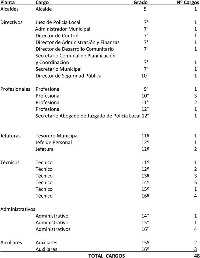 Artículo 2°: Establece Planta de Personal de la Municipalidad de Contulmo, como indica: