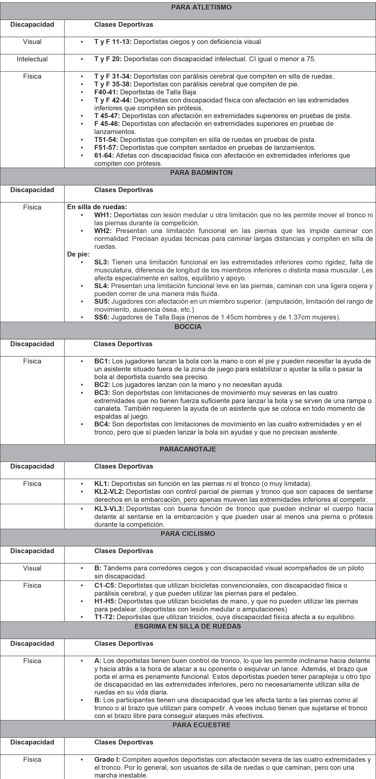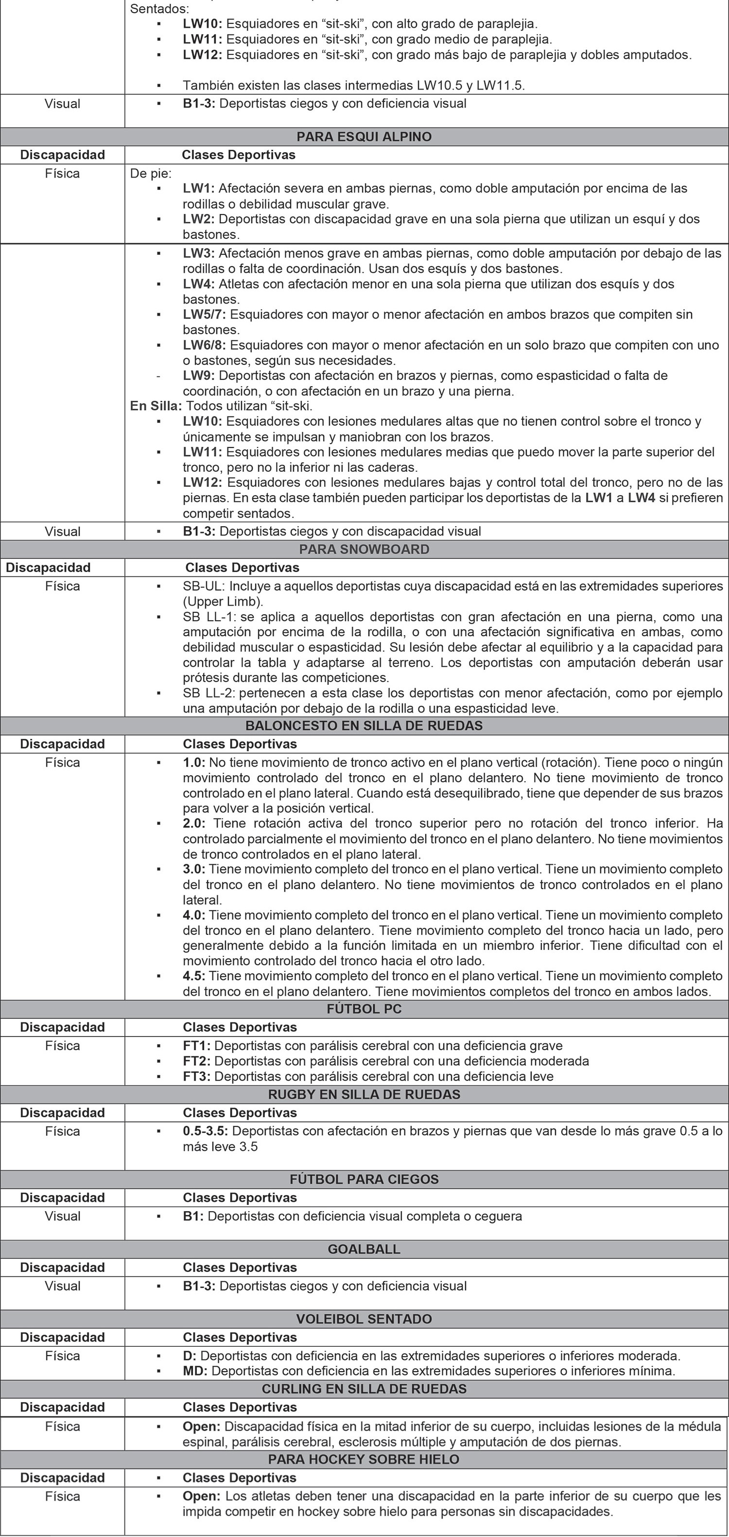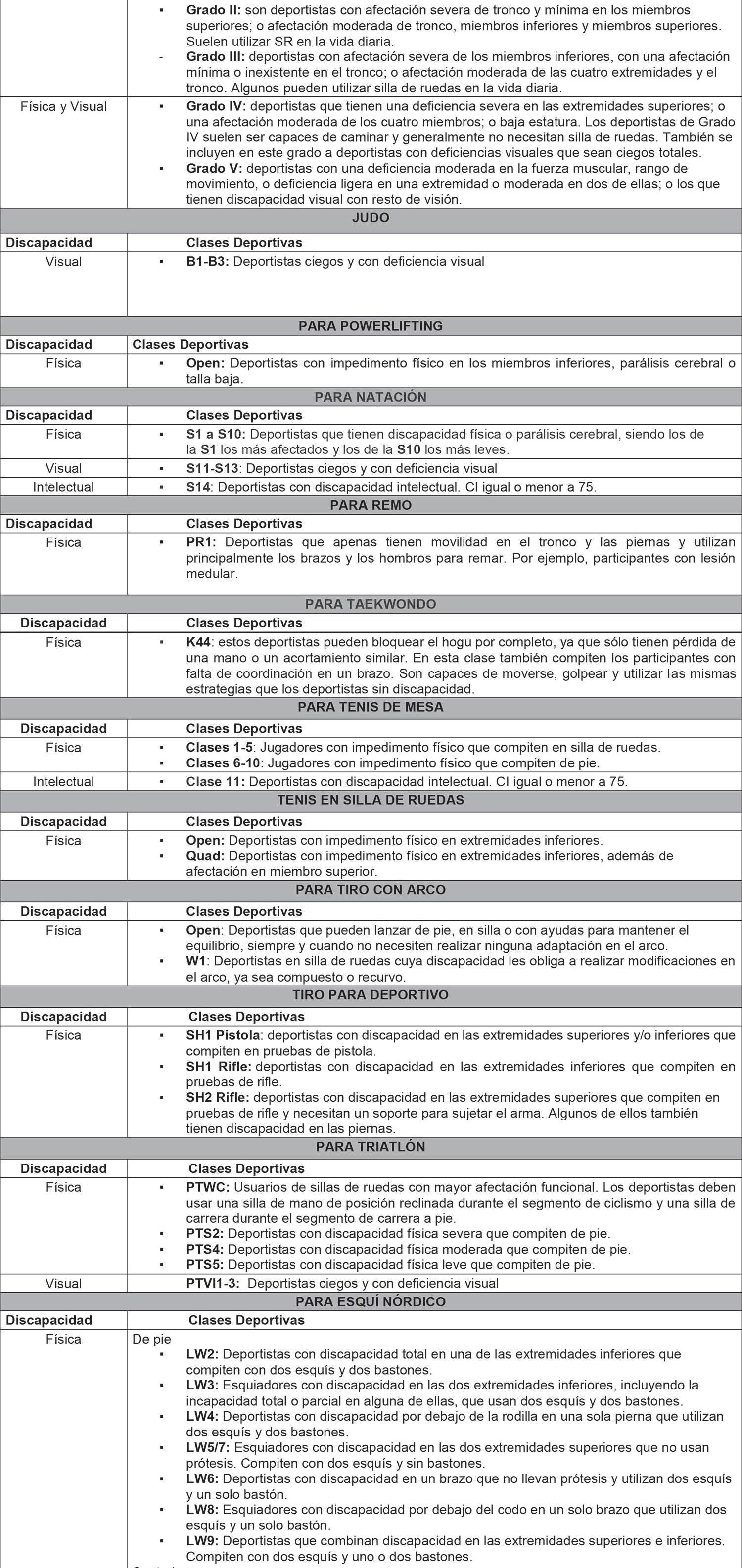 ANEXO II: DESCRIPCIÓN DE CLASES FUNCIONALES EN DEPORTE PARALÍMPICO.