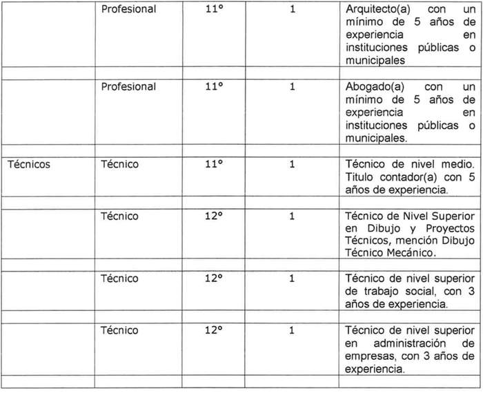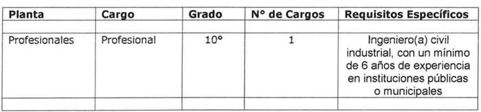 Los cargos no considerados con requisitos específicos en el cuadro precedente, se sujetarán a los requisitos generales de los artículos 7º y 8º de la ley Nº 18.883.