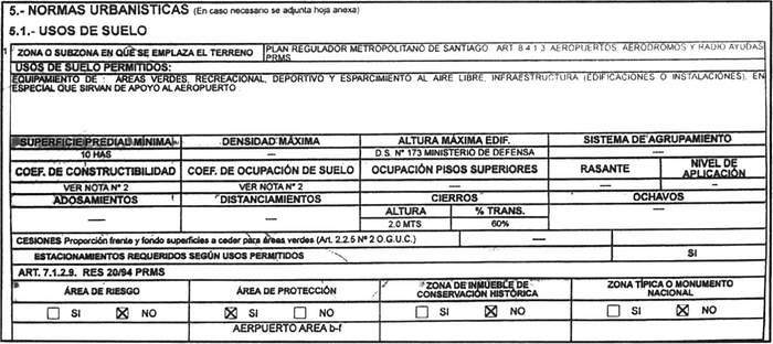 9. Asimismo, según la gráfica esquemática contenida en la Imagen Nº 2 supra, es dable señalar que si bien el predio se encuentra fuera de la Zonificación I.S.A.M. 2, y de la Zona Exclusiva de Actividades Productivas y de Servicio de Carácter Industrial, sí se encuentra afecto a la norma contenida en el artículo 8.4.1.3. De Aeropuertos, Aeródromos y Radio Ayudas, que atendida la Ordenanza del PRMS, corresponden a aquellas zonas en que se "delimita el espacio aéreo necesario para las operaciones de las aeronaves, como asimismo se restringe la intensidad de ocupación de suelo".