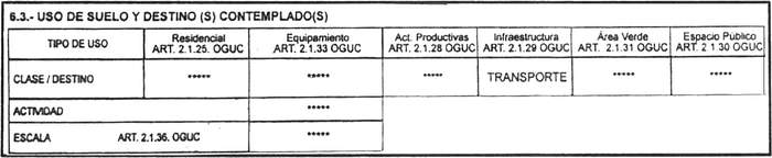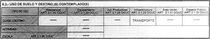 4. Finalmente, establece el P.E. Nº 039/22, en el apartado "Uso de Suelo y Destino(s) Contemplado(s)", refiere la autorización de Actividades de Infraestructura de Transporte, en los términos establecidos según el Art. 2.1.29 de la OGUC: