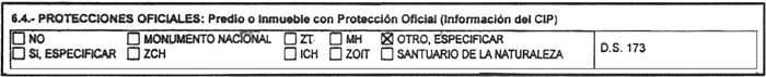3. En el ítem "Protecciones Oficiales", el P.E. Nº 039/22 si bien reconoce la aplicación del DS Nº 173, solamente dispone "Otro", sin especificar respecto del Área de Protección específica del Aeropuerto AMB en que se encuentra emplazado el predio del interesado, tal como se aprecia a continuación: